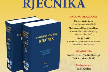02/02/2026Poštovani, pozivamo Vas na promociju "Bosansko-perzijskog rječnika" koja će se održati u srijedu 4.februara 2026.godine u 15 sati u Biblioteci "Derviš Sušić" Tuzla. Knjigu će predstaviti: - dr.sc.Amir Karić,…