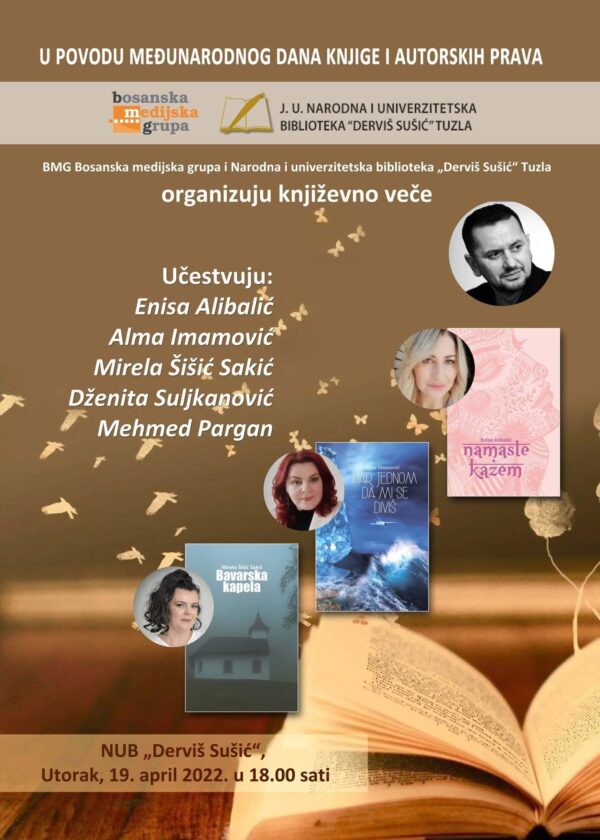 U okviru obilježavanja 23.aprila Svjetskog dana knjige i autorskih prava u organizaciji Biblioteke “Derviš Sušić” Tuzla i Bosanske medijske grupe u utorak 19. aprila u 18 sati održati će književno ...