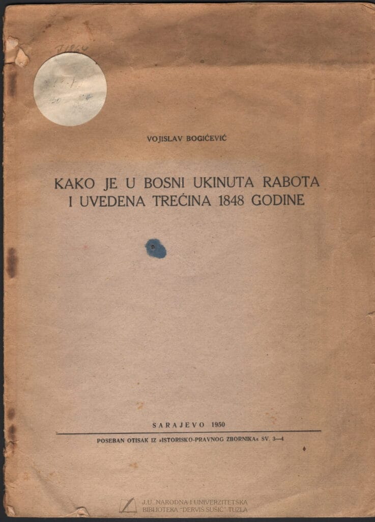 Bogićević, Vojislav – Kako je u Bosni ukinuta rabota i uvedena trećina 1848 godine |