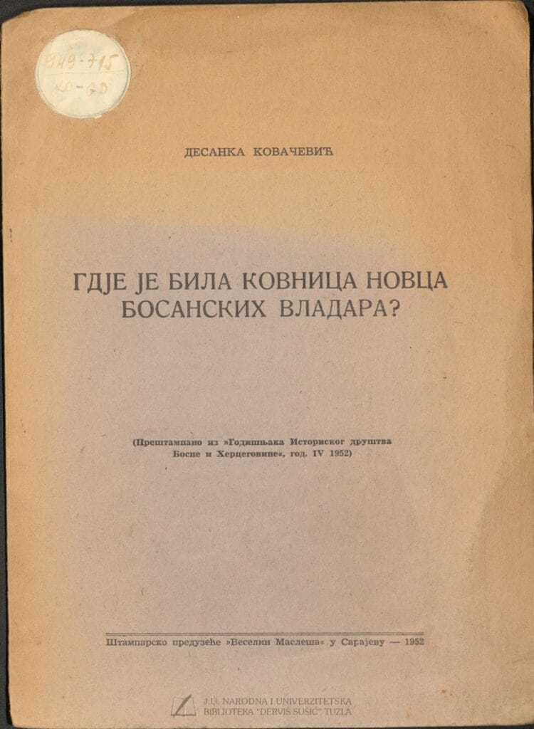 Kovačević, Desanka – Gdje je bila kovnica novca bosanskih vladara |