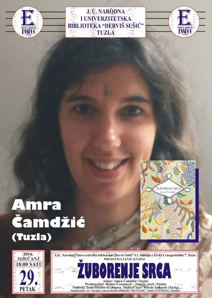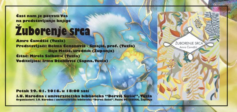 Književna tribina na kojoj će biti predstavljene knjige „Žuborenje srca“, Amre Čamdžić iz Tuzle i „Pločnik od smisla“, Melise Hasić iz Banovića održat će se u petak 29. januara 2015. godine u 18 sati u našoj Biblioteci.