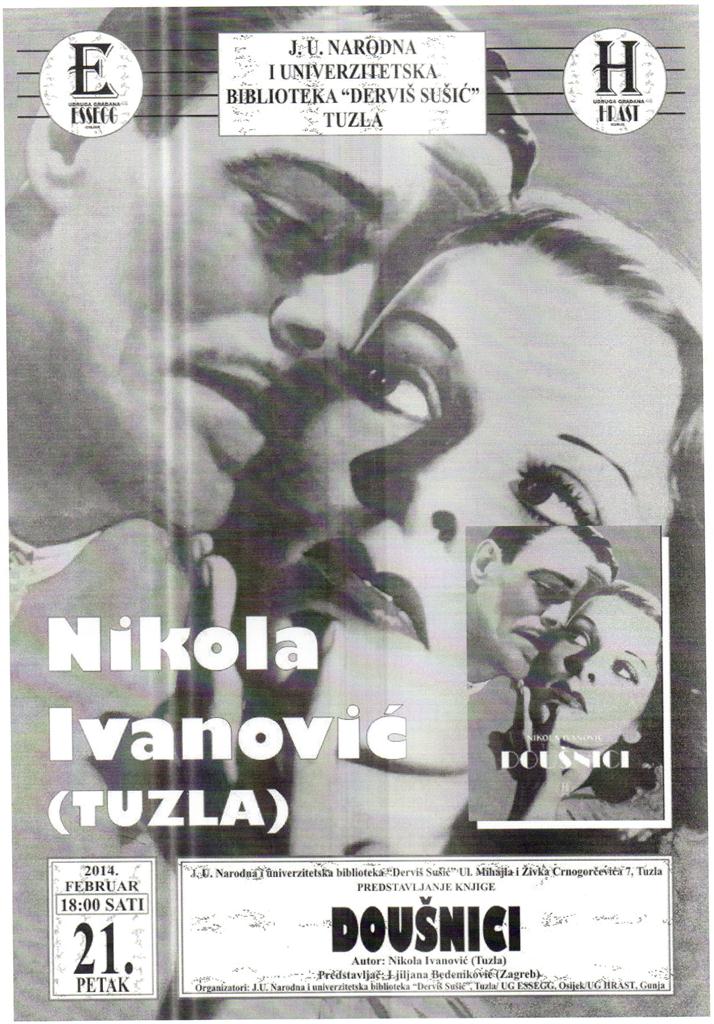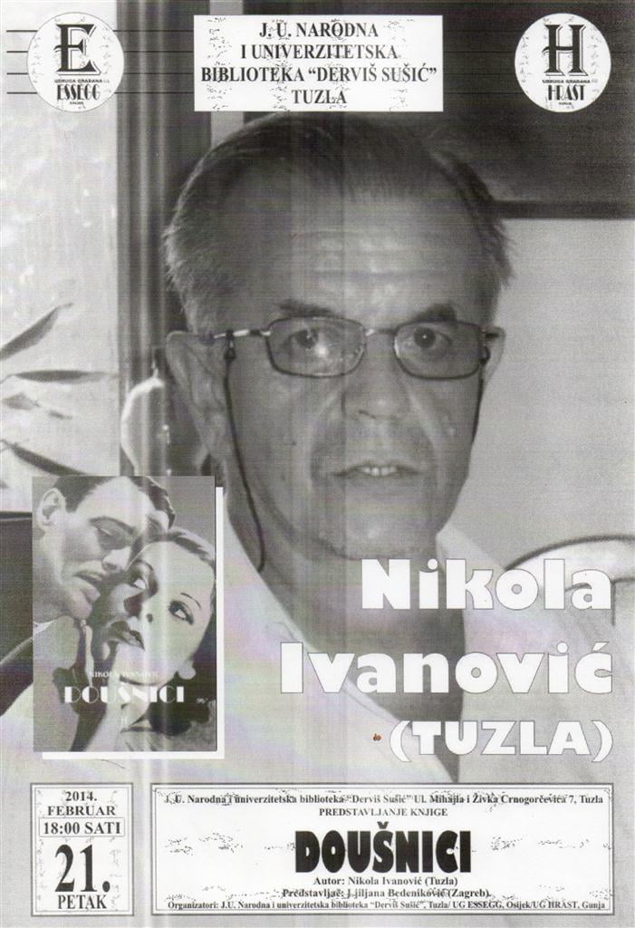 U organizaciji Narodne i univerzitetske biblioteke „Derviš Sušić” Tuzla i Udruženja građana UG ESSEGG, Osijek i Udruženja građana „Hrast” Gunja, biće upriličena promocija knjiga „Doušnici” autora Nikole Ivanovića i „Na kraju duge” mlade autorice iz Srebrenika Emine Vujašević.