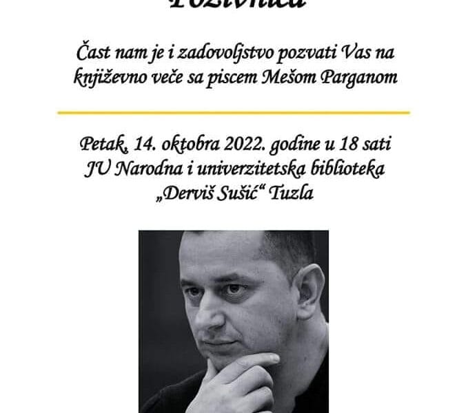 Read MorePoštovani, pozivamo Vas na književno veče sa piscem Mehmedom Mešom Parganom u petak 14.oktobra u 18 sati, sa kojim otvaramo manifestaciju Mjesec knjige u našoj Biblioteci. Raspored planiranih događaja dostavljamo u prilogu, te Vas molimo da najavite Mjesec knjige, kao i da prisustvujete našim događajima. Zahvaljujemo na saradnji! Lijep pozdrav.