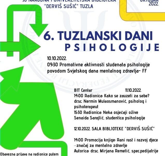 Read MorePozivamo vas da svojim prisustvom omogućite medijsku prezentaciju knjige „Rani rast i razvoj djece-značaj za mentalno zdravlje“, autorice doc.dr. Mirjane Remetić, čija će se promocija održati u srijedu 12. oktobra 2022. godine, u 14:00 sati u konferencijskoj sali Narodne i univerzitetske biblioteke „Derviš Sušić“ u Tuzli. Promocija knjige se održava u okviru 6. Tuzlanskih dana […]