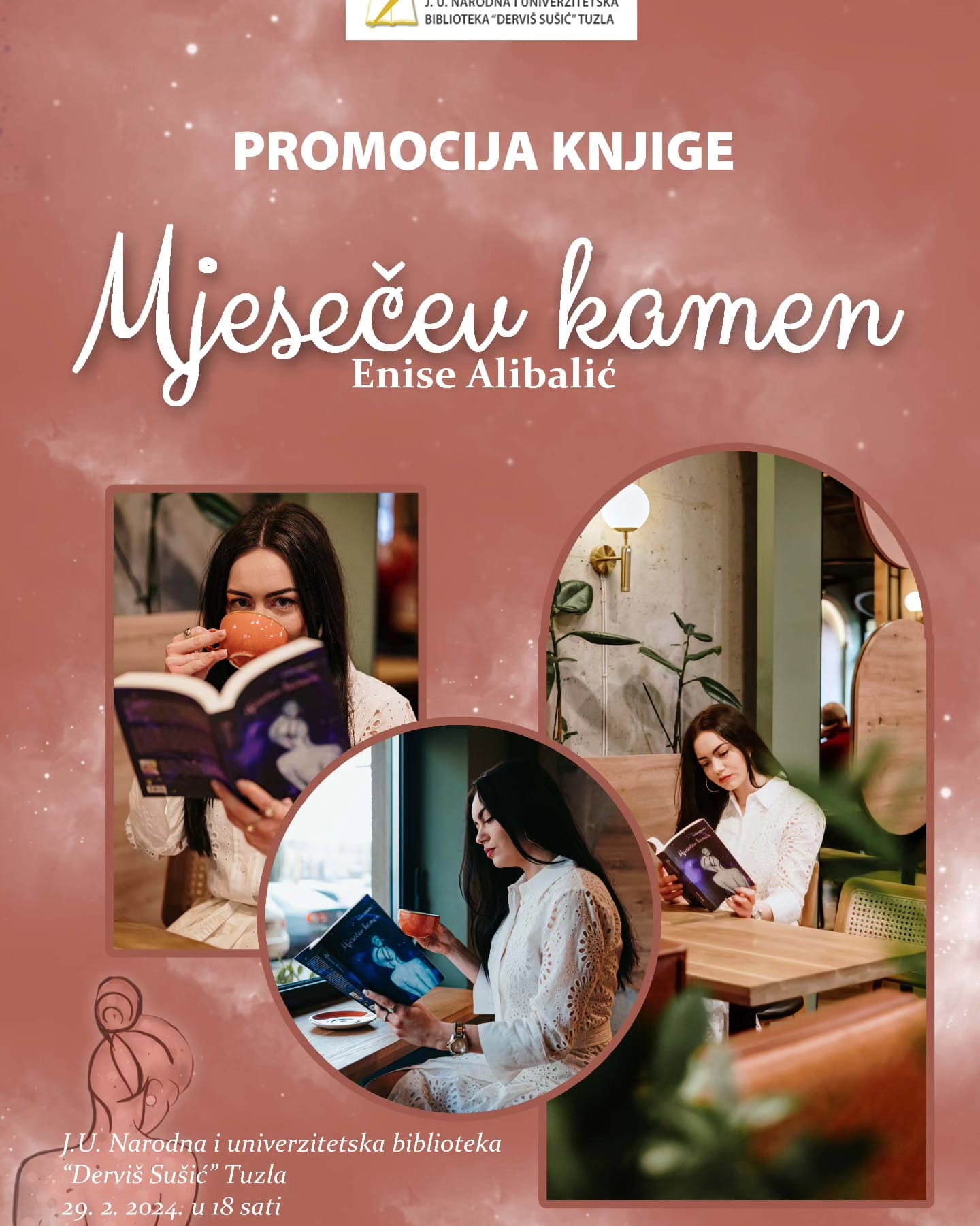 Narodna i univerzitetska biblioteka „Derviš Sušić“ Tuzla bila je domaćin promocije knjige „Mjesečev kamen“ Enise Alibalić. Riječ je o zbirki crtica iz svakodnevnog života. U svakoj crtici duboko je proživljen događaj, dan, sat ili samo trenutak u vremenu. Iako sa sobom nosi pouke, svaka je ova crtica ostavljena čitatelju na dar da o njoj promišlja i pronađe značenje za sebe. Svojevrsni je ovo vodič kroz životnu svakodnevnicu, životne borbe, bitke, ali i pobjede, uspjehe, kao i osvještavanje trenutaka čistog užitka zbog života u njegovoj punini. Ova je knjiga slavlje životu. Prikazuje ljude, ljudske emocije i osjećanja bez potrebe da ih uljepšava ili nagrđuje. Knjiga je to razgovora sa sobom, knjiga duboke kontemplacije i osvještavanja. Namijenjena je svima koji život žive u njegovoj punini i na svaki dan gledaju kao na poklon bez obzira na to šta on donio sa sobom.