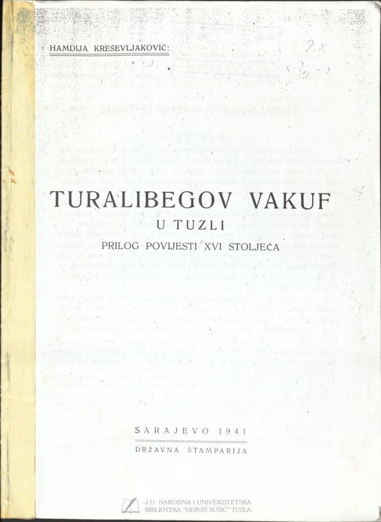 Naslov | Turalibegov vakuf u Tuzli : prilog povijesti XVI stoljeća / Hamdija Kreševljaković |