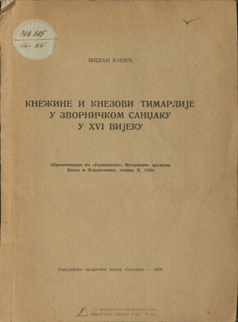 Vasić, Milan – Knežine i knezovi timarlije u Zvorničkom sandžaku u XVI vijeku